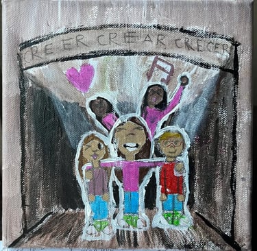 Esta es una pintura que hizo mi hija de 9 años, representando lo que el Teatro Arnoldo Herrera significa para ella.